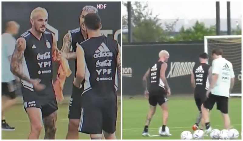 Во время тренировки сборной Аргентины Месси решил подшутить над полузащитником «Атлетико» Родриго де Паулем. Тот прикол явно не оценил.