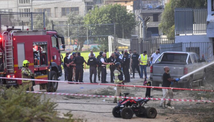 Полицейские и пожарные работают на месте обстрела со стороны Ливана в деревне Мадждаль-Шамс на Голанских высотах