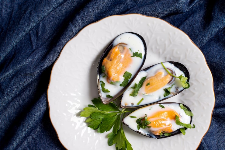 Теперь пришло время приготовить морские жемчужины. Промойте их под проточной водой и удалите створки. Затем положите их в кастрюлю с кипящей водой и варите в течение нескольких минут, пока они не откроются. После этого достаньте их из кастрюли и дайте стечь воде.