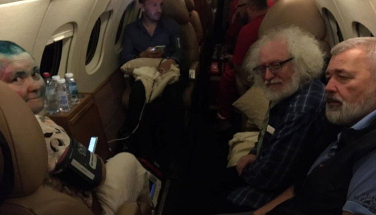 Вместе с главным редактором «Новой газеты» Дмитрием Муратовым и экс-редактором радиостанции «Эхо Москвы» Алексеем Венедиктовым они вылетели в Москву.