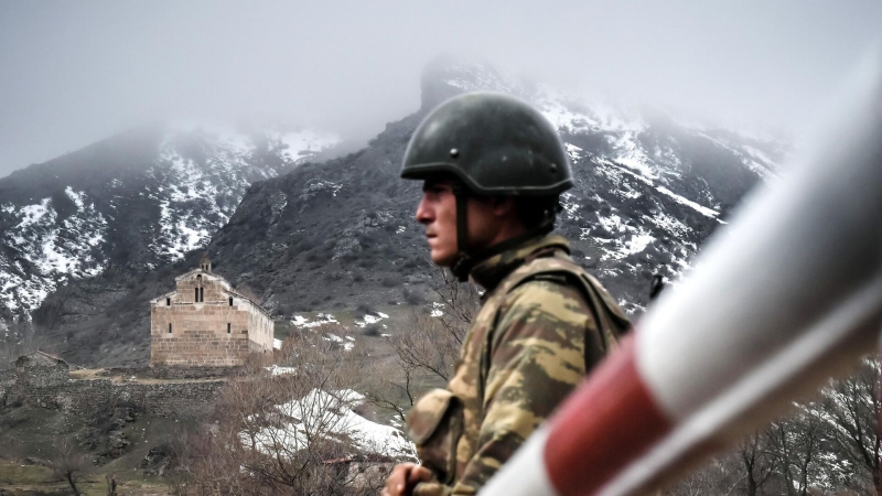 Военнослужащий Азербайджана на КПП . Архивное фото