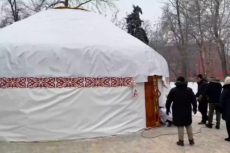Отмечается, что юрта проработает до окончания холодов.