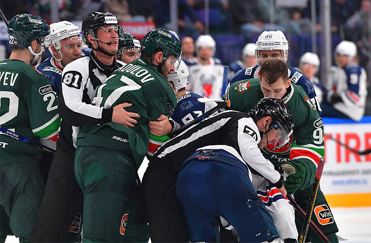 Хотя удаление Александр схватил еще до конца первого периода, когда зачем-то полез третьим во взаимоотношения Кирилла Семенова и 19-летнего Василия Атанасова, открывшего счет в матче. Радулов сперва толкнул молодого, а затем схватил за шкирку и пытался свалить (или протащить по льду на глазах у трибун?), но помешали арбитры и налетевшие игроки «Торпедо».