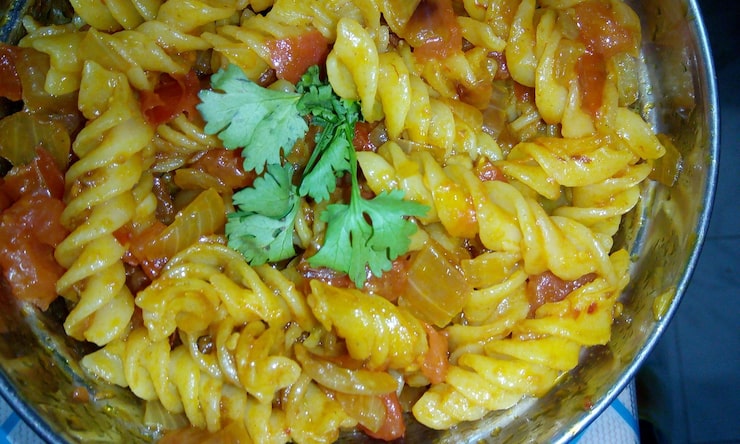 Для пасты используйте ваш любимый сорт. Отварите согласно инструкции на упаковке. Слейте воду и добавьте соус к пасте. Перемешайте и подавайте горячим. При желании можно добавить тертый сыр и зелень.