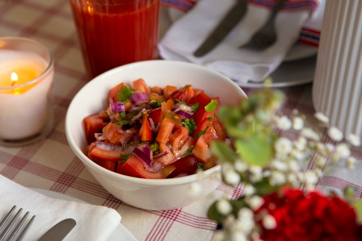 Первым делом необходимо подготовить ингредиенты. Для нашего блюда понадобятся спелые томаты, огурцы, лук, чеснок, зелень, соль и сахар. Также приготовьте банки и крышки для консервации.