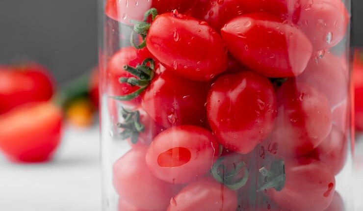 Для начала выберите спелые, здоровые помидоры. Они должны быть плотными на ощупь и иметь яркий цвет. Затем тщательно вымойте их и удалите плодоножки. Следующий шаг — приготовление желатинового раствора. Разведите желатин в холодной воде и дайте ему набухнуть в течение 10-15 минут. После этого растворите желатин на водяной бане, не доводя до кипения.