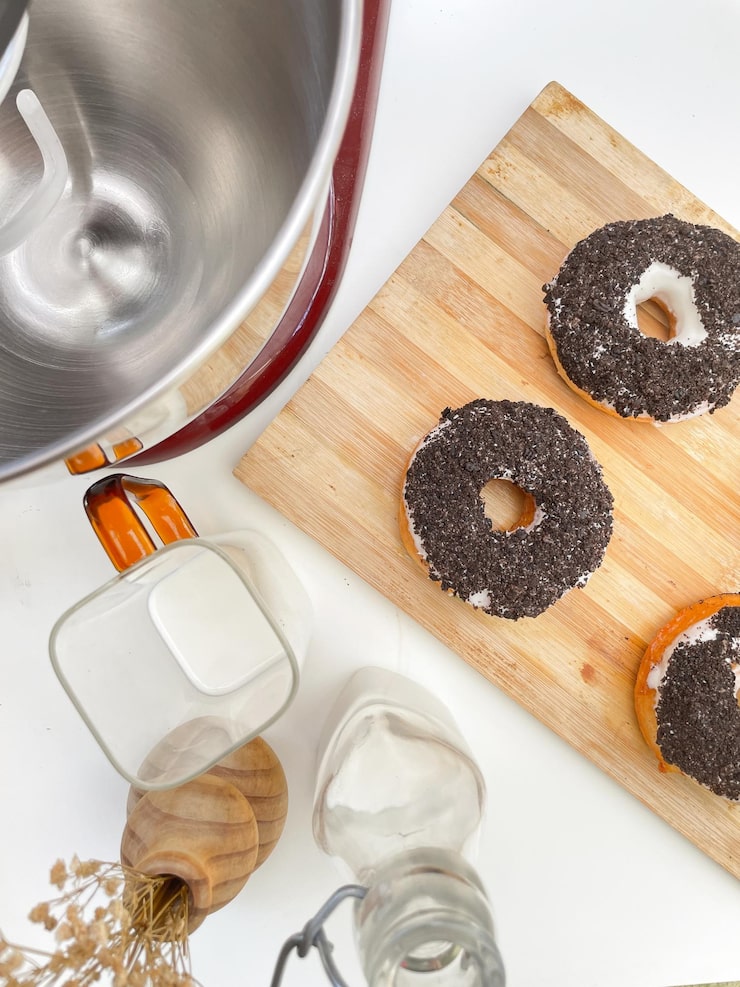 Наконец, окуните остывшие пончики в глазурь, дайте лишнему стечь, и поместите их на решетку для охлаждения. Перед подачей на стол посыпьте пончики сахарной пудрой или другими любимыми топпингами.