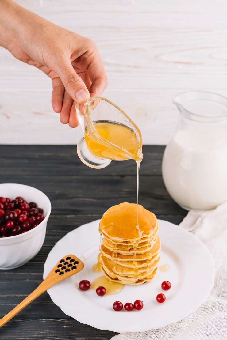Подавайте блинчики горячими, полив их медом, сиропом или любым другим любимым соусом. Наслаждайтесь!