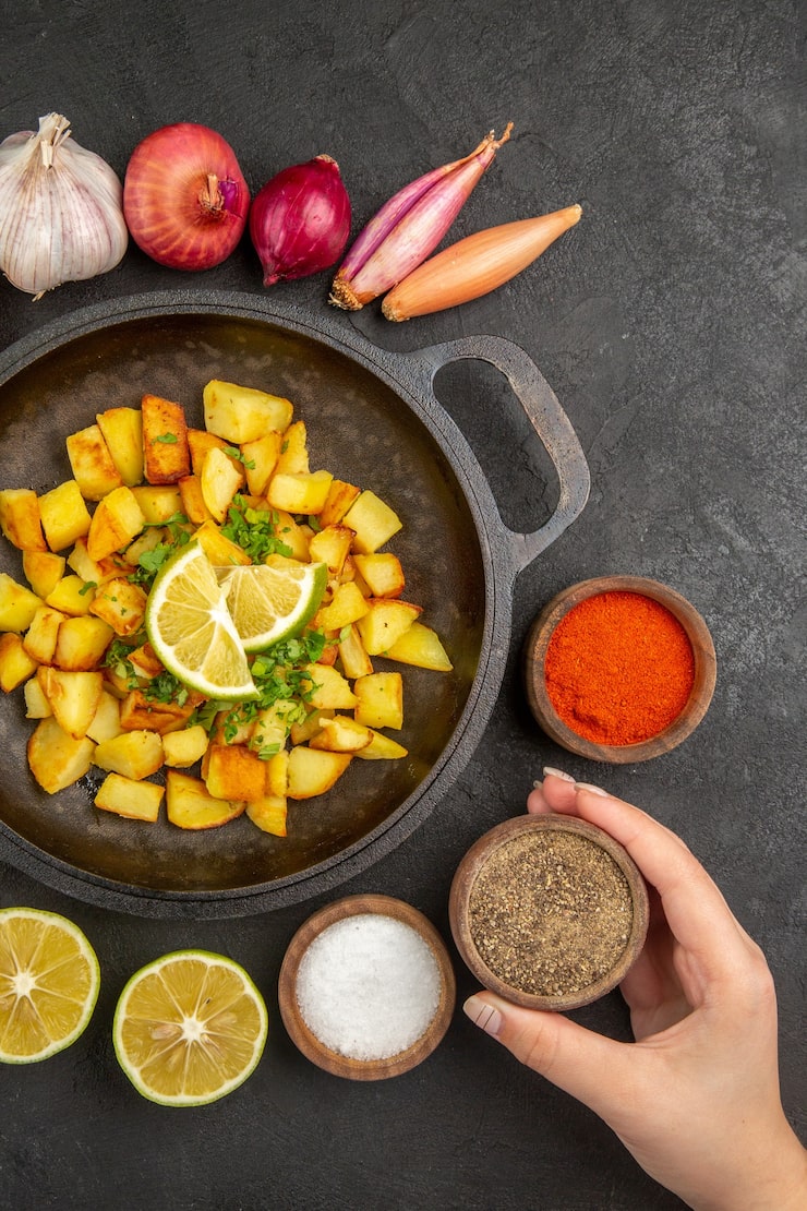 Начните с обжарки нарезанной говядины на горячей сковороде до румяной корочки. Затем добавьте нарезанную картошку и тушите, пока она не станет мягкой и золотистой. Для аромата добавьте чеснок, лук и травы по вкусу.