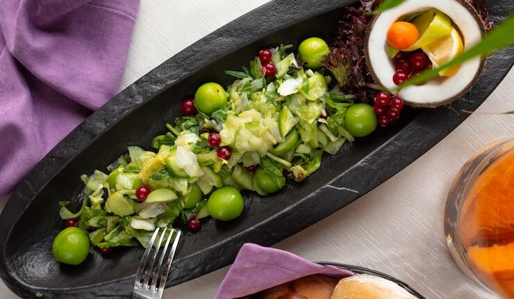 Если вы хотите добавить немного экзотики на свой стол, попробуйте салат из манго и авокадо. Для этого блюда вам понадобятся спелые манго, авокадо, красный лук и кинза. Соус делается из сока лайма, меда и оливкового масла. Этот салат не только вкусный, но и очень красочный, что делает его идеальным украшением стола.
