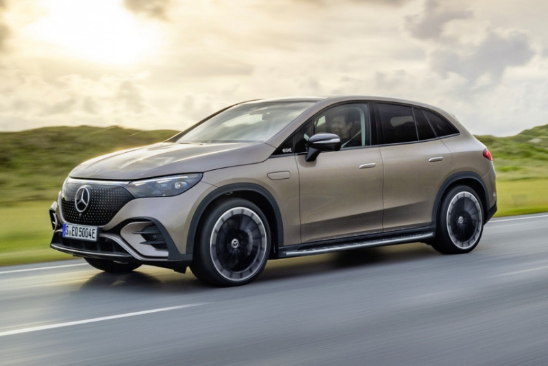 Если легковой EQE имеет безрамочные двери, то у кроссовера они с рамками стекол. На выбор предложены колеса диаметром от 19 до 22 дюймов. Матричные фары есть уже в базе, а опционные фары Digital Light могут «рисовать» на дороге подсказки для водителя в виде стрелок и символов. Готов и обвес AMG Line с более агрессивным дизайном бамперов.