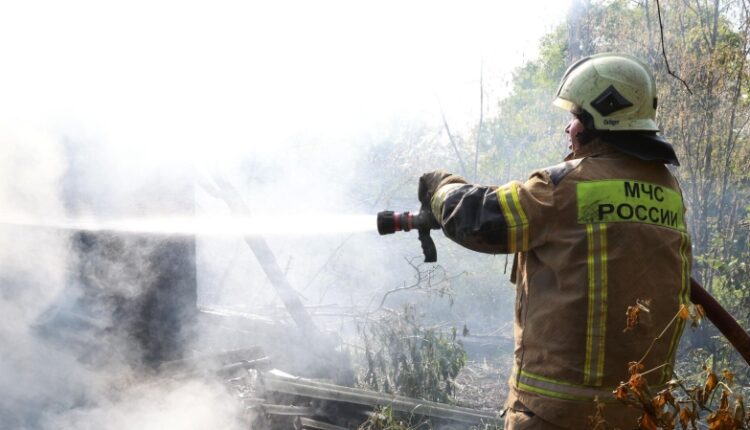 Сотрудник пожарной службы МЧС РФ тушит пожар в жилом доме, возникший в результате обстрела со стороны ВСУ города Моспино. Архивное фото