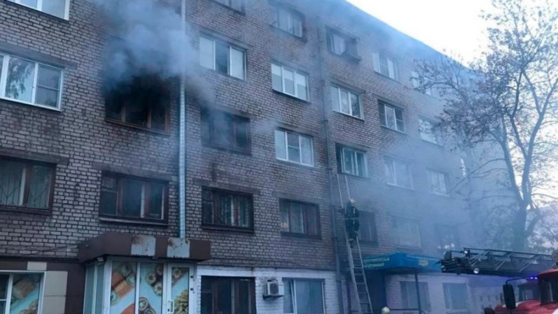 Пожар произошел около 17:00 на третьем этаже. В тушении было задействовано шесть машин МЧС и 22 человека.