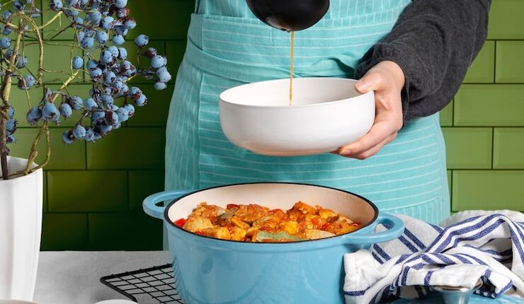 После того, как все ингредиенты добавлены, добавьте жидкость, такую как бульон или вино. Жидкость поможет приготовить блюдо и придаст ему аромат. Убедитесь, что жидкость покрывает все ингредиенты.