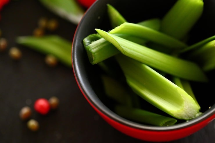 После этого, разрежьте стручок пополам вдоль, а затем каждую половину разрежьте поперек на кусочки по вашему выбору. Более мелкие кусочки будут готовиться быстрее.