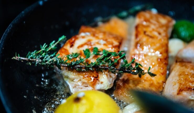 Первый рецепт — это рыба, запеченная с лимоном и травами. Для этого рецепта вам понадобится филе рыбы, лимон, чеснок, оливковое масло, соль и перец. Смешайте оливковое масло, сок лимона, чеснок, соль и перец в миске. Положите филе рыбы на противень, залейте смесью и добавьте лимонные дольки и травы по вашему выбору. Запекайте в предварительно разогретой духовке при температуре 180 градусов в течение 15-20 минут.