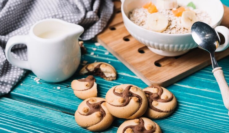 Выпекайте печенье в предварительно разогретой до 180°C духовке в течение 10-12 минут или до золотистого цвета. Дайте печенью остыть на противне в течение 5 минут, затем переложите на решетку для охлаждения.