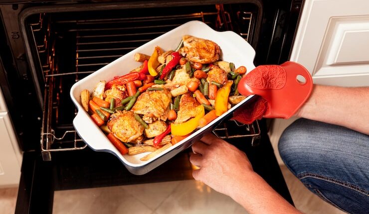 Начните с классического блюда — курицы с овощами. Запеките в духовке куриные бедра или грудку с картофелем, морковью и луком. Для аромата добавьте чеснок, розмарин и оливковое масло. Готовьте при температуре 180 градусов в течение 30-40 минут. Подавайте с зеленью и лимоном.