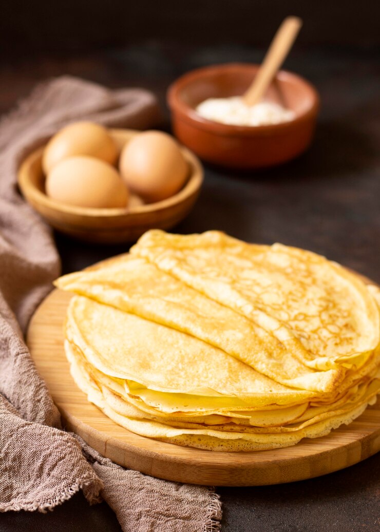 Начните с приготовления блинной основы. В миске смешайте 2 стакана муки, 1 пакетик сухих дрожжей и 1 чайную ложку соли. В другой миске взбейте 2 яйца, затем добавьте 2 стакана молока и 2 столовые ложки сахара. Соедините обе смеси и перемешайте до однородной консистенции. Дайте тесту постоять в течение 30 минут, чтобы дрожжи активировались.