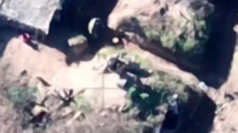 Разведывательный дрон во время разведки опорного пункта Вооруженных сил Украины (ВСУ) зафиксировал драку боевиков около населенного пункта Шумы на горловском направлении.