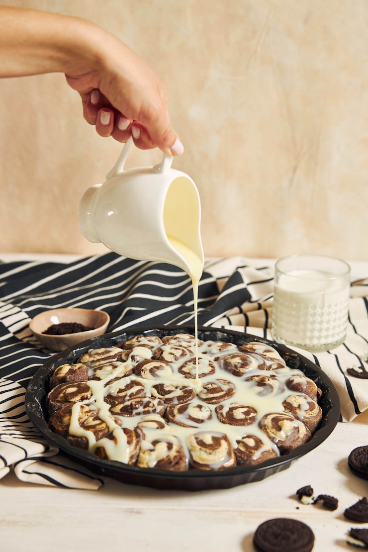 Теперь приготовьте начинку. Растопите 1/2 стакана шоколада на водяной бане или в микроволновке. Добавьте 1/2 стакана сгущенного молока и перемешайте до получения однородной массы. Добавьте 1 чайную ложку ванильного экстракта и перемешайте еще раз.