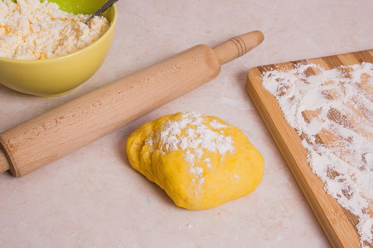 Накройте миску с тестом чистым полотенцем и оставьте в теплом месте на 1 час, чтобы оно поднялось. После этого раскатайте тесто и вырежьте круги диаметром около 3 дюймов. Наполните каждый круг начинкой по вашему выбору, сложите тесто пополам и защиплите края.