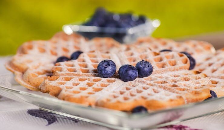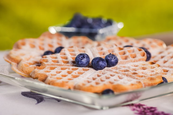 Разогрейте электровафельницу до средней температуры. Нанесите небольшое количество теста на каждый вафельник, используя ложку или шпатель. Закройте электровафельницу и выпекайте вафли в течение 2-3 минут или до тех пор, пока они не станут золотисто-коричневыми. Используйте вилку или шпатель, чтобы снять вафли с вафельника и дайте им остыть на решетке.