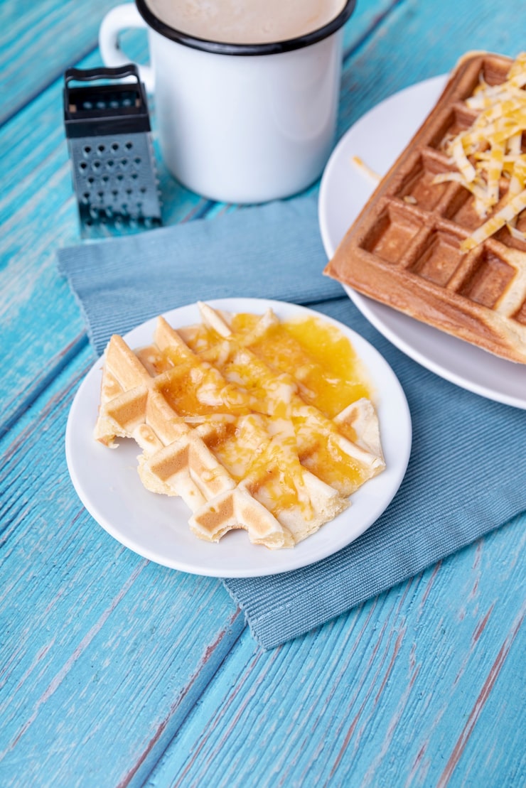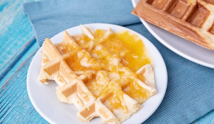 Осторожно выньте вафли из вафельницы и дайте им остыть на решетке для выпечки. Подавайте вафли горячими, полив их медом, сиропом или любым другим любимым соусом.