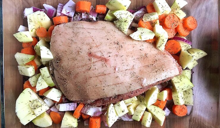 Разместите куски печени на противне, выстланном пергаментной бумагой. Это облегчит чистку противня после приготовления.