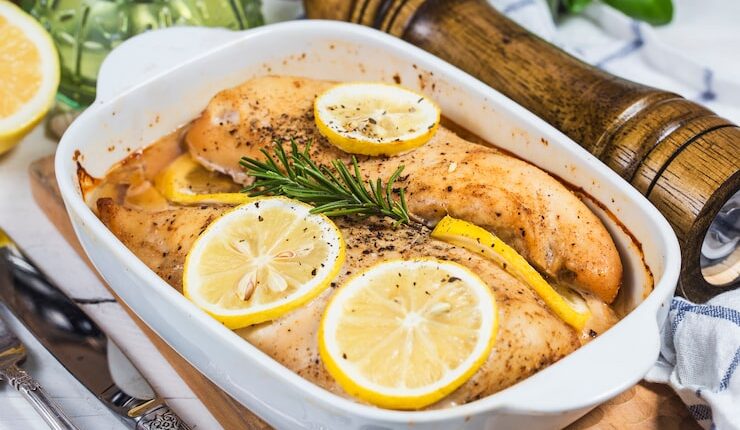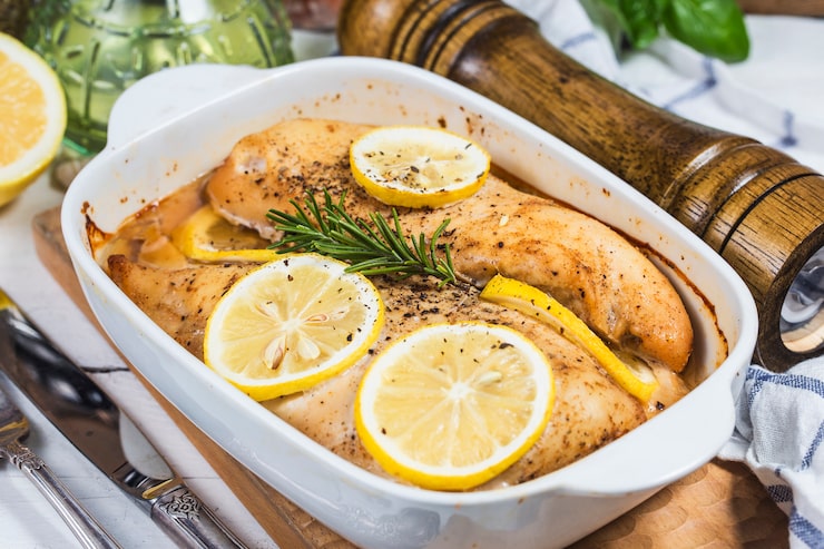 Сначала приготовьте лимонный маринад. В миске смешайте сок одного лимона, 3 столовые ложки оливкового масла, 2 зубчика чеснока, пропущенные через пресс, и немного соли и перца. Добавьте листья тимьяна и петрушки, мелко нарезанные.
