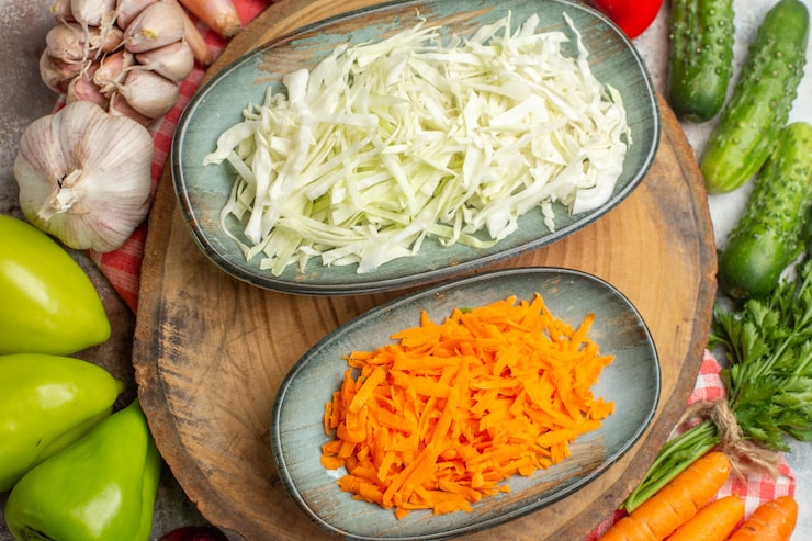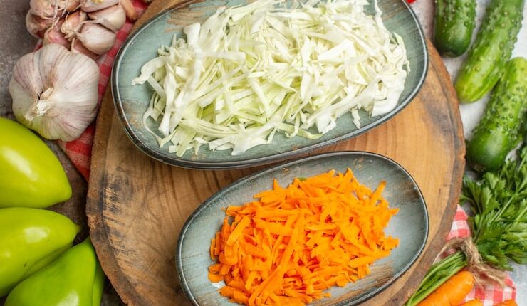 Начните с нарезки капусты. Для этого удалите внешние листья и разрежьте кочан на четвертинки. Затем тонко нашинкуйте капусту, чтобы она была хрустящей и легко прожевывалась.