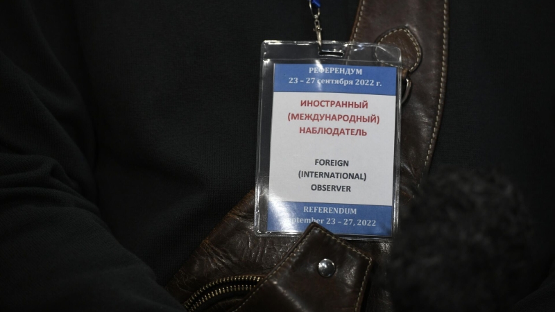 Беджик иностранного наблюдателя на референдуме. Архивное фото