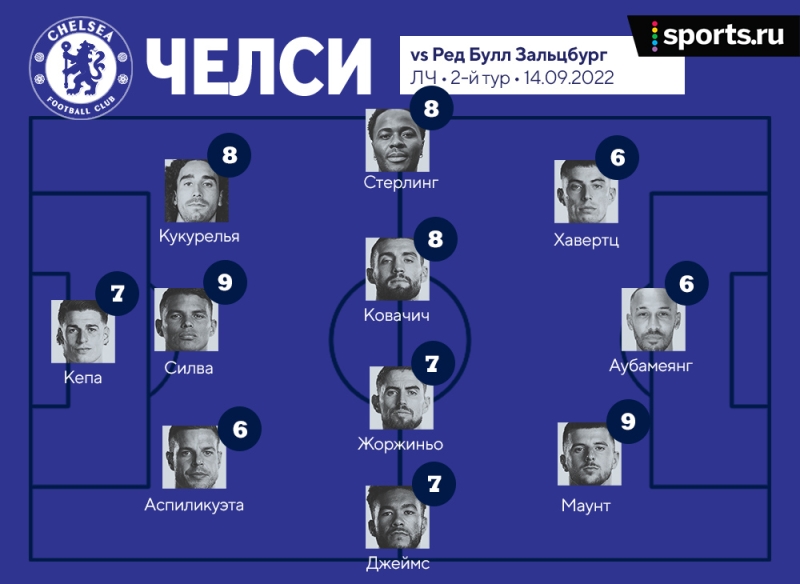 Мэйсон Маунт (9) – кажется, англичанин сливал Тухеля. Иначе как объяснить сегодняшний матч? Маунт цеплялся за все спорные мячи. Фантастически работал впереди. Много вертикальных передач. Почему нельзя было так при Томасе?