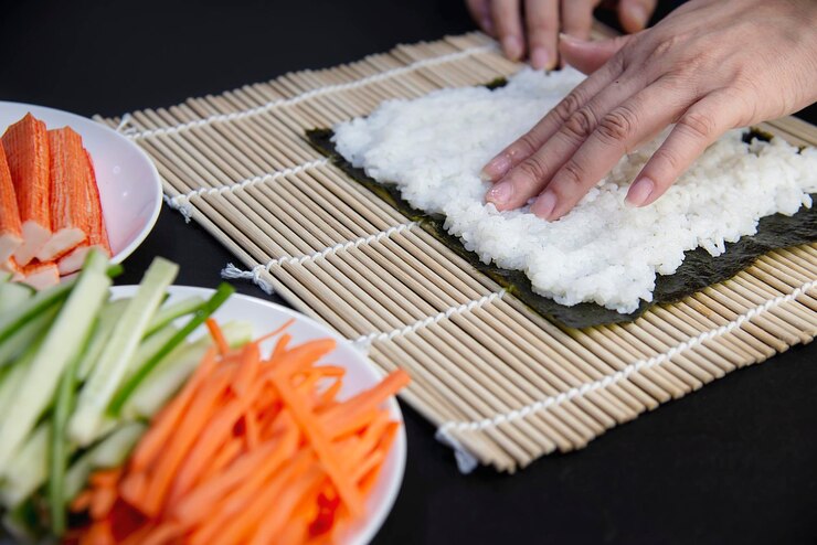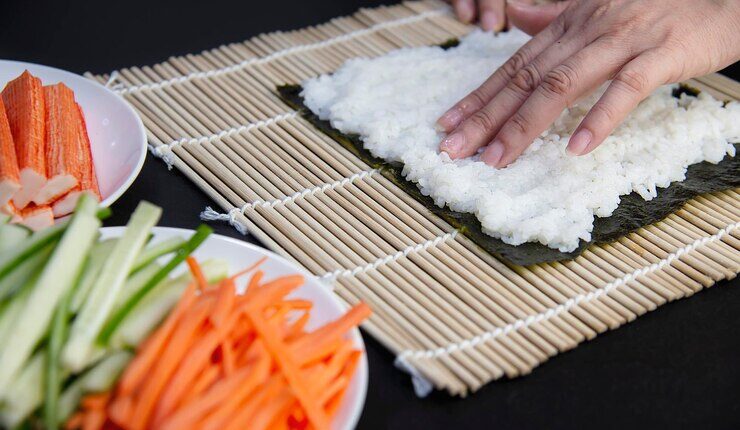 Пока рис варится, подготовьте другие ингредиенты для суши. Очистите и нарежьте овощи, приготовьте морепродукты и приготовьте соус. Это поможет вам быстрее собрать суши, когда рис будет готов.