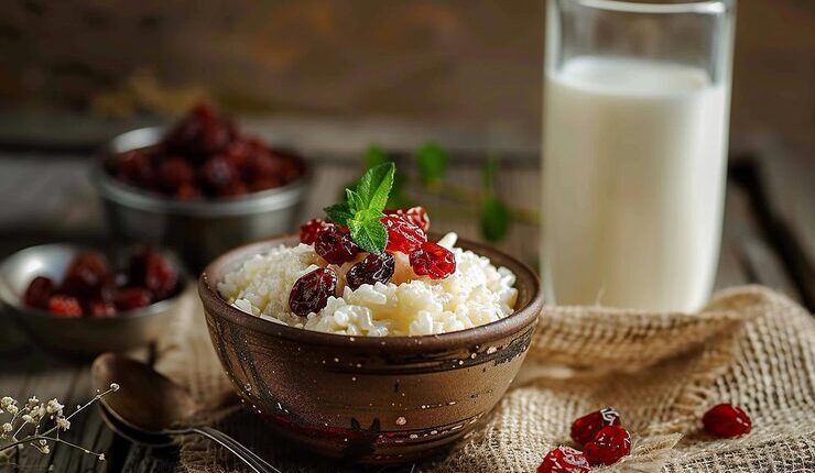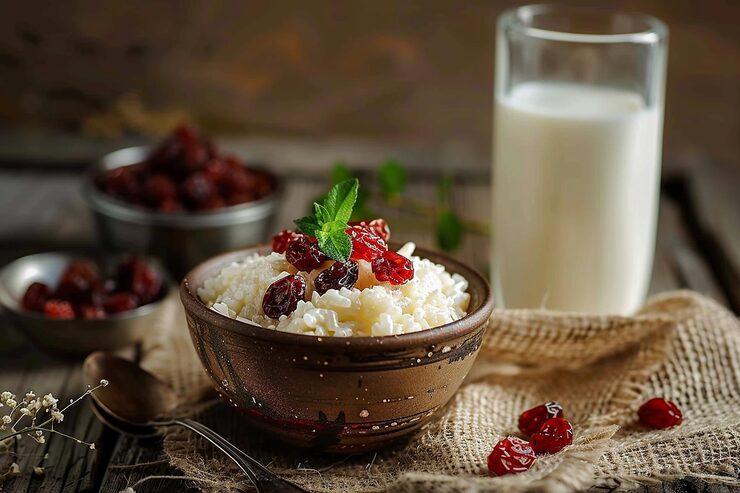 Приготовление и подача рисовой каши с изюмом на молоке