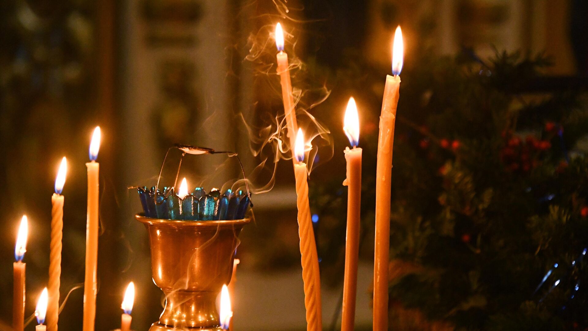 Женщина держит свечу во время богослужения