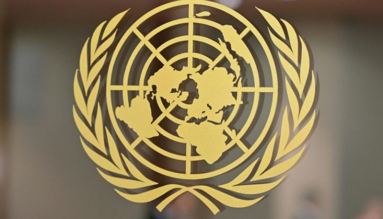 Логотип Организации Объединенных Наций в штаб-квартире Организации Объединенных Наций в Нью-Йорке. Архивное фото