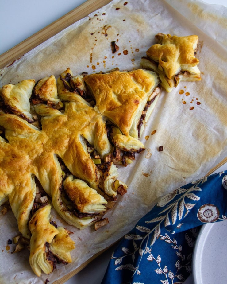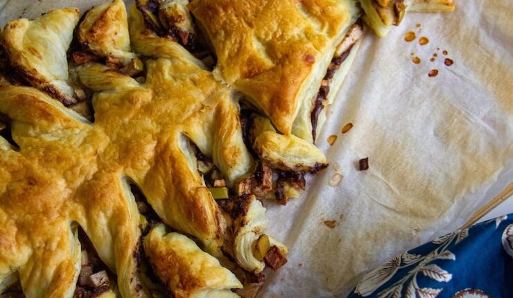 Выпекайте пирог в предварительно разогретой до 200 градусов духовке в течение 25-30 минут или до тех пор, пока тесто не станет золотистым, а начинка не закипит. Дайте пирогу остыть в течение нескольких минут перед подачей на стол.