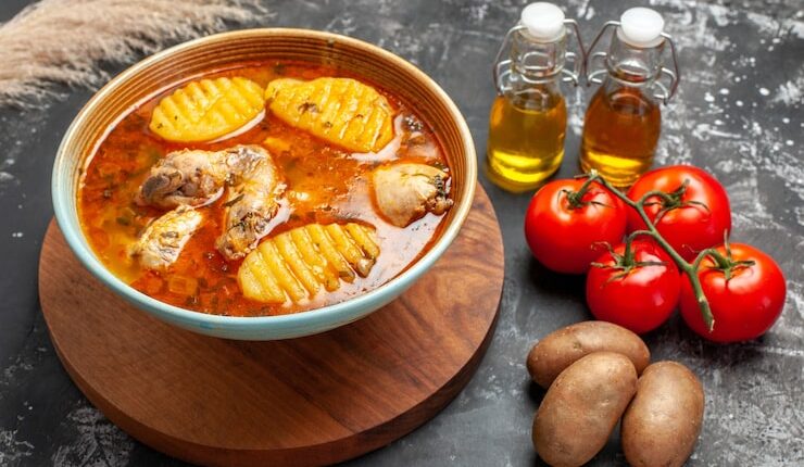 Затем, добавьте воду или бульон в кастрюлю и доведите смесь до кипения. Добавьте картофель, морковь и другие овощи, которые вы хотите включить в суп. Дайте им вариться до мягкости. Если вы хотите добавить более насыщенный вкус, можно добавить томатную пасту или сок.