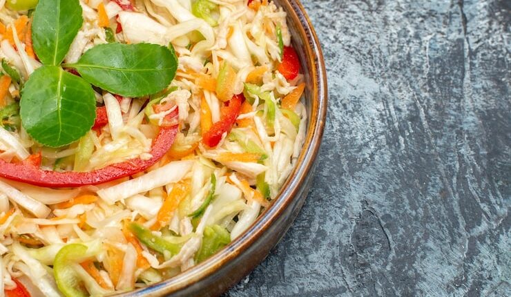Чтобы приготовить этот витаминный микс, начните с нарезки перца и капусты. Для перца можно использовать нож или терку для моркови, чтобы получить тонкие ломтики. Капусту нарежьте тонкими полосками или нашинкуйте с помощью специальной терки. Затем смешайте их в миске.