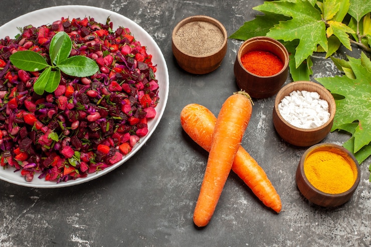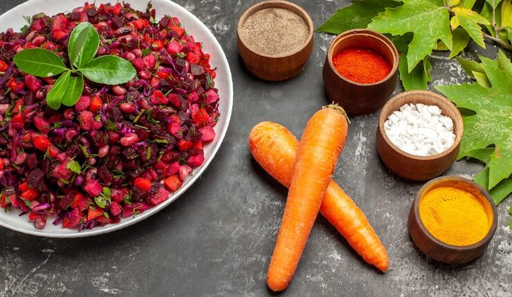Основой этого салата являются два корнеплода — свекла и морковь. Оба они богаты витаминами и минералами, а также обладают противовоспалительными свойствами. Для приготовления салата используйте как можно более свежие корнеплоды, чтобы сохранить их максимальную пользу для здоровья.