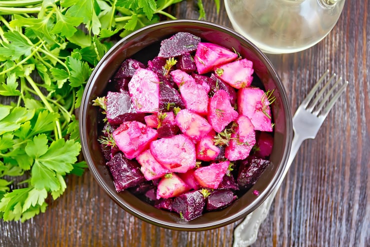 Начните с приготовления основного ингредиента — свеклы. Вы можете приготовить ее заранее, чтобы сэкономить время, или сделать это непосредственно перед приготовлением салата. Варите свеклу до мягкости, затем остудите и нарежьте кубиками. Это придаст салату приятную текстуру и насыщенный цвет.