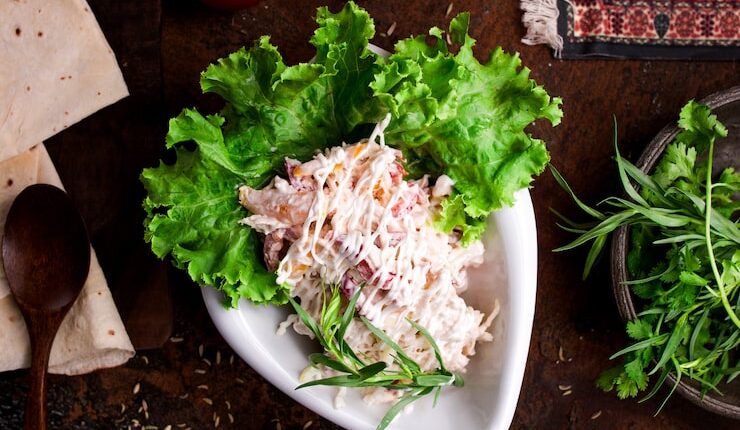 Для заправки салата смешайте майонез, горчицу и немного меда. Эта заправка придаст салату пикантный вкус и сделает его еще более аппетитным.