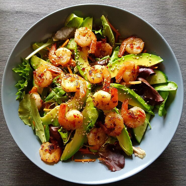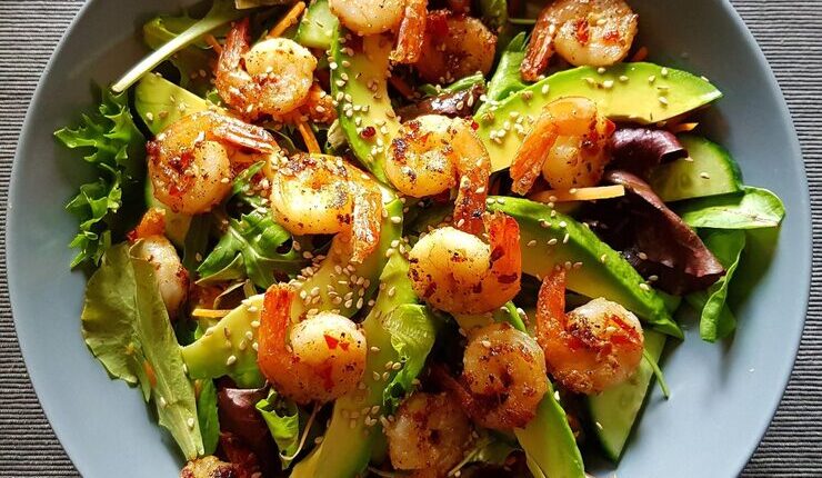Подавать салат можно сразу же после приготовления, пока креветки еще теплые. Он идеально подходит в качестве легкого обеда или ужина, а также в качестве закуски на вечеринке.