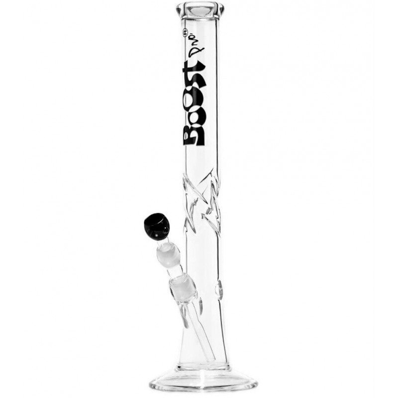 Еще одна модель от бренда Boost тоже представлена в черном матовом цвете. Но есть одно отличие: колба для жидкости конусообразная. Бонг в форме мензурки более статичный и вмещает в себя больше воды. В результате дым более насыщенный и вкусный.