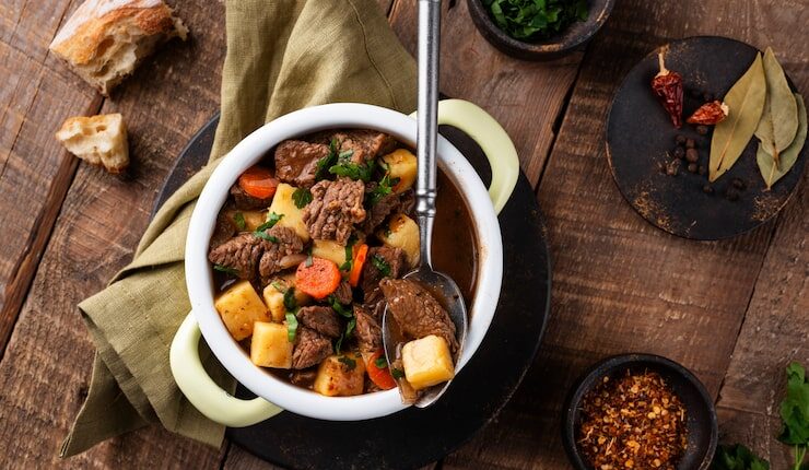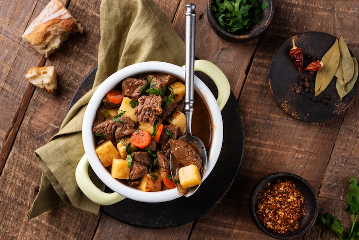 Начните с обжаривания мяса на сильном огне до образования румяной корочки. Затем добавьте лук и морковь и готовьте до тех пор, пока они не станут мягкими. После этого добавьте помидоры, картофель и специи по вкусу. Залейте все это водой и тушите на медленном огне в течение нескольких часов, чтобы мясо стало мягким и сочным.