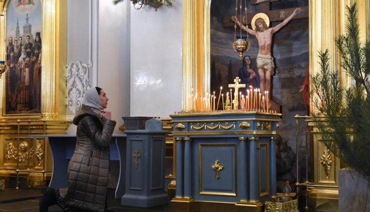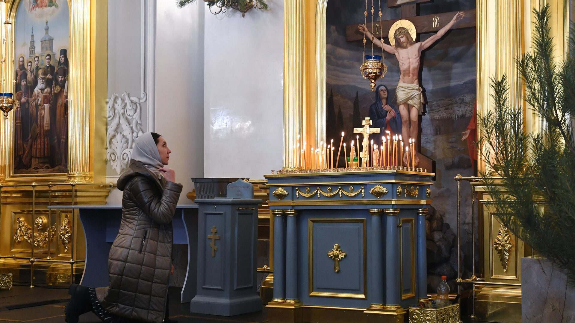 Верующая на Божественной литургии в Главном Храме Вооруженных Сил РФ