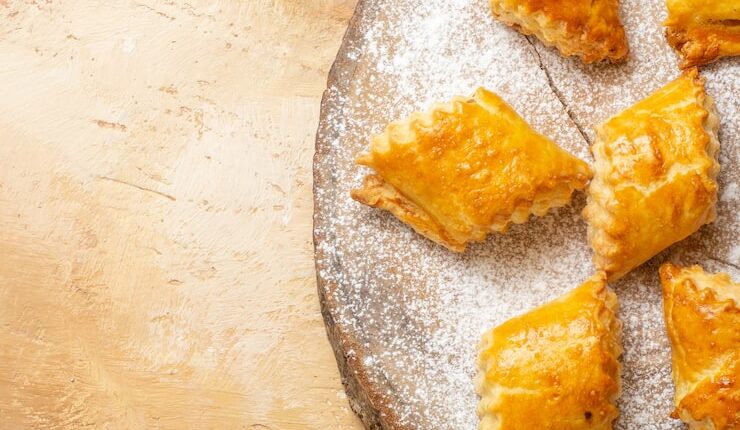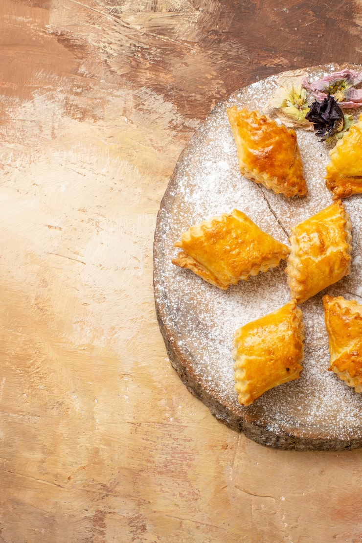 Перед тем, как отправить изделия в печь, смажьте их яйцом, чтобы они стали золотистыми и хрустящими. Выпекайте их при температуре 180 градусов в течение 20-25 минут или до тех пор, пока они не станут золотисто-коричневыми. Дайте им остыть перед подачей на стол.