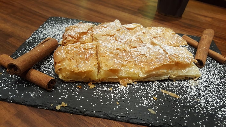 Выпекайте слойку в предварительно разогретой духовке при температуре около 180 градусов Цельсия в течение 25-30 минут или до тех пор, пока верх не станет золотистым. Дайте слойке остыть перед подачей на стол.