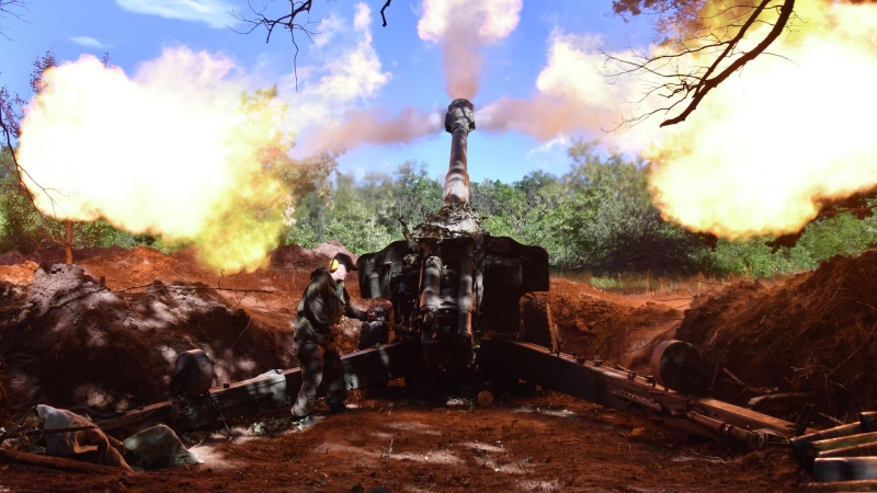 Бойцы артиллерийского расчета ведут огонь по позициям ВСУ. Архивное фото